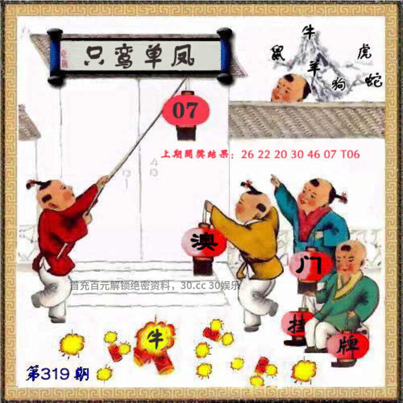 319期挂牌:【只鸾单凤】 解释:单凤解单数鸡蛇兔牛羊猪,挂:07 爆:牛。 综合:鸡蛇兔牛羊猪鼠 |